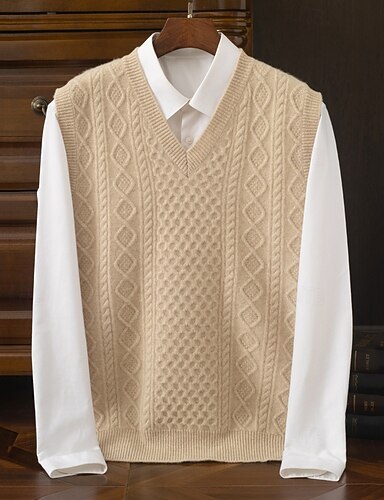 Herren Pullunder Kleid Pullover Pullover Weste Strickpullover Gerippt Zopfmuster Stricken Normale Oberteile Gestrickt Einfach V Ausschnitt Mode Lässig Urlaub Alltagskleidung Bekleidung Herbst Winter