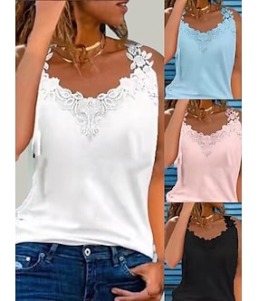 Damen Tank Top Bluse Spitzentops Spitze Einfach Stilvoll Klassisch Modern Ärmellos V Ausschnitt Normale Oberteile Täglich Ferien Ausgehen Blau Schwarz Weiß Rosa Sommer Frühling
