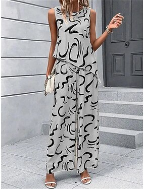 Damen Modisch Tank Top Hosen-Sets Breites Bein Hosen Hose Ärmellos Rundhalsausschnitt Print Bedruckt Festtage Wochenende Schwarz Blau Beige Sommer Regular Fit