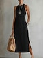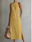 Damen-Midikleid aus Baumwollimitat und Leinenstoff, Sommerkleid, lässig, locker geschnitten, ärmellos, Neckholder, in Blau, Schwarz, Weiß und Gelb erhältlich.