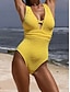 Damen Badeanzug Einteiler Bikini Bademode Ausschnitt Urlaub Strandbekleidung Einfarbig V Ausschnitt Ärmellos Badeanzüge