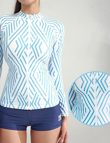 Damen Anti UV Shirt Badeanzug Bademode Bedruckt Frontreißverschluss Schnelltrocknend Leicht Atmungsaktiv Langarm Bodysuit Badeanzug Surfen Strand Wassersport Sommer