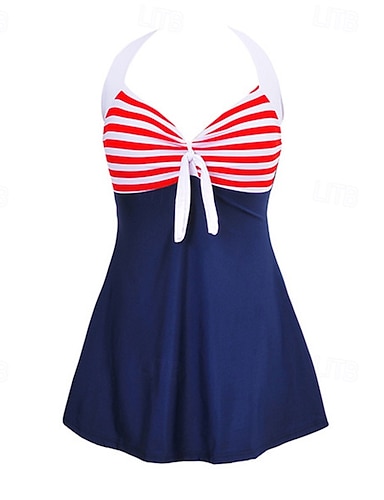 Damen Regulär Neckholder-Bikini-Oberteil Badeanzug Badeanzüge Streifen UV Schutz Elastisch Ärmellos Bademode Badeanzug Surfen Tauchen Schwimmen Sommer