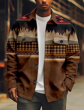 Herren Stammes Bandana-Druck Hemd Hemdjacke Langarm Vintage Stamm Outdoor Strasse Casual Herbst Winter Umlegekragen Knopf Tasche Bedruckt Braun