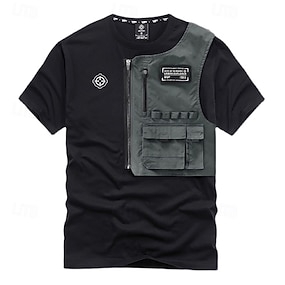 Herren T Shirt T-Shirt Kurzarmshirt Kurzarm Rundhalsausschnitt Frühling & Sommer Farbblock Mode Designer Basic Patchwork Reißverschluss Urlaub Straße Ausgehen Schwarz Top T-Shirt für Herren