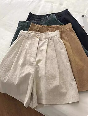 Damen Caprihose Baumwoll Mischung Kunstbaumwollleinen Shorts Lässig Kurz Natürliche Taille Einfach Tasche Schnalle Außenbereich Bequem Atmungsaktiv Straße Ausgehen Aprikose Schwarz Grün Khaki Sommer