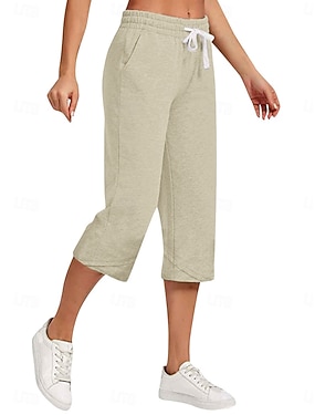 Damen Caprihose Kunstbaumwollleinen Sommershorts Strandshorts Urlaub Basic Lässig Wadenlang Hohe Taille Einfach Kordelzug Tasche Komfort Außenbereich Mikroelastisch Täglich Strand Ferien Schwarz Wei