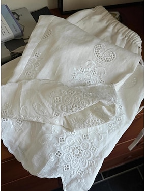 Damen Kunstbaumwollleinen Hose Sommerhose Strandhose Urlaub Basic Lässig Volle Länge Hohe Taille Einfach Bestickt Tasche Elastischer Bund Komfort Weich Atmungsaktiv Dehnbar Outdoor Strand Ferien Weiß