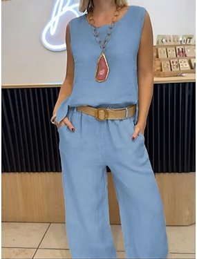Damen Hosen-Sets Kunstbaumwollleinen Ärmellos Rundhalsausschnitt Einfach Elegant Mode Streetwear Lässig Täglich Outdoor Blau Schwarz Orange Sommer Normale Passform