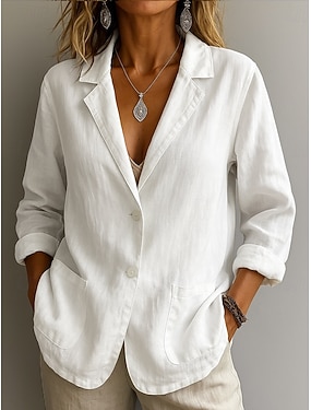 Damen Baumwoll-Leinen-Sets 100% Baumwolle Langarm Hemdkragen Einfarbig Aktiv Basic Alltagstauglich Schwarz Weiß Gelb Sommer Normale Passform