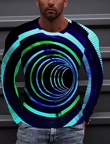 Herren Optische Täuschung Grafikdrucke T Shirt Langarm T-Shirt 3D-Druck Rundhalsausschnitt Hemd Sport Designer Basic Outdoor Straße Täglich Blau Frühling & Herbst Bekleidung S M L XL XXL 3XL