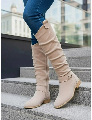 Damen Stiefel Cowboystiefel Wildlederschuhe Schluffige Stiefel Arbeit Täglich Kniehohe Stiefel Blockabsatz Runde Zehe Vintage Lässig Komfort Kunstwildleder Mandelfarben Dunkelbraun Schwarz