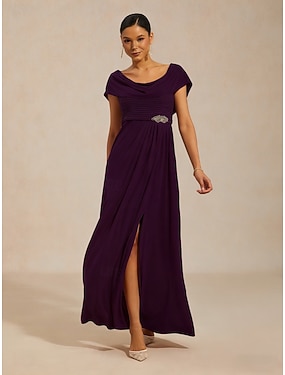Damen Maxikleid A Linie Kleid Formell Abendgesellschaft Plissiert Geteilt Normale Passform Einfarbig Ärmellos Wasserfallausschnitt Aubergine