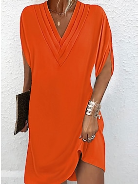 Damen Minikleid Shiftkleid Figurbetontes Kleid Basic Lässig Fledermaus Ärmel Arbeit Täglich Normale Passform Einfach Kurzarm V Ausschnitt Rosa Orange Grün Armeegrün Sommer Frühling