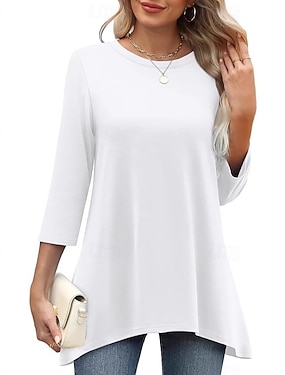 Damen Bluse Einfarbig Täglich Stilvoll Basic Dreiviertelarm Rundhalsausschnitt Normale Oberteile Täglich Blau Schwarz Orange Grün Khaki Sommer Frühling
