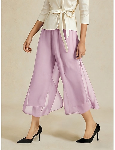 Damen Weites Bein Gerade Hosen Elegant Wadenlang Mittlere Taillenlinie Natürliche Taille Elastischer Bund Dehnbar Lässig Alltagskleidung Cocktailparty Lila Sommer Frühling Herbst