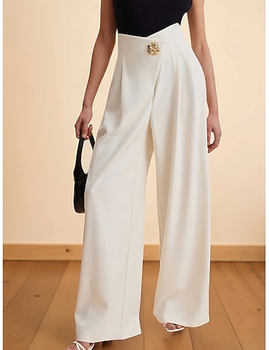 Damen Weites Bein Chinos Elegant Mode Streetwear Volle Länge Hohe Taille Einfach Plissiert Bequem Weich Mikroelastisch Outdoor Formell Straße Schwarz Weiß Sommer Frühling Herbst Lässiger Schnitt