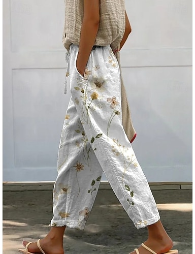 Damen Baumwoll Mischung Kunstbaumwollleinen Chinos Stoffhosen Urlaub Basic Lässig / Sportlich Knöchellang Mittlere Taille Blumen Grafik Tasche Baggy Druck Komfort Unelastisch Täglich Urlaub Formell