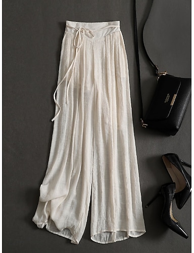 Damen Weites Bein Leinenhosen Hose Freizeithose Urlaub Mode Basic Volle Länge Mittlere Taillenlinie Einfach Kordelzug Plissiert Tasche Komfort Leicht Atmungsaktiv Unelastisch Täglich Urlaub Straße