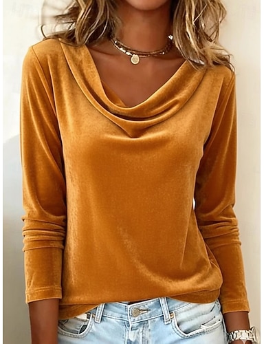 Damen Samt Geschichtet Elegant Stilvoll Basic Langarm Wasserfallausschnitt Normale Oberteile Blau Schwarz Gelb Wein Grün Frühling Herbst Winter