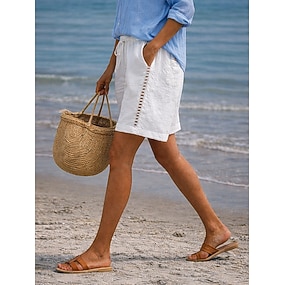Damen Shorts aus Baumwollleinen Shorts Sommershorts Strandshorts Urlaub Mode Alltagstauglich Kurz Hohe Taille Einfarbig Einfach Kordelzug Tasche Elastischer Bund Komfort Weich Atmungsaktiv