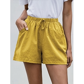 Damen Shorts aus Baumwollleinen Shorts Sommershorts Mode Streetwear Basic Kurz Hohe Taille Einfach Kordelzug Tasche Elastischer Bund Atmungsaktivität Bequem Unelastisch Täglich Urlaub Straße Dunkel