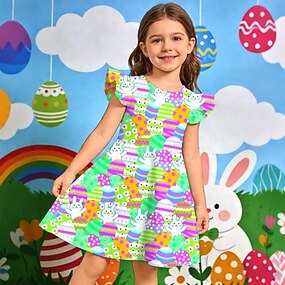 Ostern Mädchen' 3D Grafik Kaninchen Hase Kleid Kurzarm 3D-Druck Sommer Frühling Täglich Urlaub Party Niedlich Basic Lässig Kinder 4-12 Jahre Freizeitkleid A Linie Kleid Knielang Normale Passform