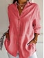 Damen Baumwoll-Leinen-Hemden Tasche Knöpfe Einfarbig Vintage Stilvoll Basic Langarm Hemdkragen Normale Oberteile Täglich Weiß Rosa Himmelblau Aprikose Sommer Frühling Herbst