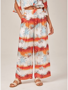 Tropical Temptation fließende Chiffonhose mit weitem Bein