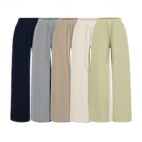Damen Waffel Weites Bein Chinos Urlaub Basic Volle Länge Hohe Taille Einfarbig Einfach Komfort Dehnbar Fitnessstudio Yoga Sport im Freien Babyblau Schwarz Hellgrün Lavendel Sommer Frühling Herbst