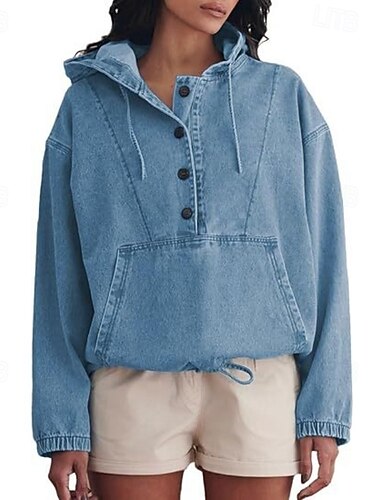 Damen Bluse Kordelzug Knöpfe Einfach Stilvoll Klassisch Modern Langarm Mit Kapuze Normale Oberteile Täglich Ferien Ausgehen Blau Marineblau Leicht Blau Sommer Frühling