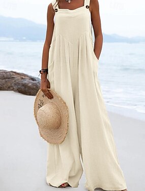 Damen Overall Aktiv Grafik Ärmellos Weites Bein Urlaub Straße Lässiger Schnitt Schwarz Weiß Beige Sommer