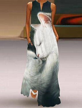damen pfauenfeder tier lässiges kleid langes kleid maxikleid etuikleid sommerkleid lässig outdoor täglich wochenende tasche bedruckt ärmellos v-ausschnitt kleid regular fit weiß gelb rot frühling