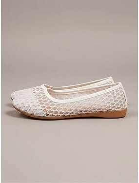 Beigefarbene Ballerinas aus Mesh für Damen – atmungsaktive, leichte und bequeme Slipper mit rutschfester Sohle, lässige Sommerschuhe für Reisen und den Alltag.