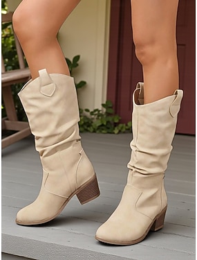 braune, lässige Damenstiefel mit halbhoher Wade – Stiefel im Westernstil mit dickem Absatz für Herbstmode, Outdoor-Events und entspannte Tage