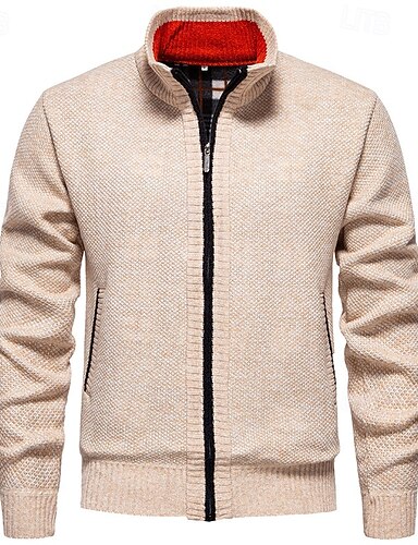 Herren Strickjacke Kurzer Pullover Reißverschluss-Pullover Strickpullover Gerippt Stricken Normale Oberteile Tasche Fleece Einfach Stehkragen Mode Klassisch Urlaub Alltagskleidung Bekleidung Herbst
