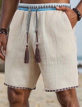 Herren Shorts Leinenshorts Sommershorts Strandshorts Tasche Kordelzug Elastischer Bund Einfach Komfort Atmungsaktiv Kurz Urlaub Ferien Strand Hawaiianisch Boho Schwarz Marineblau