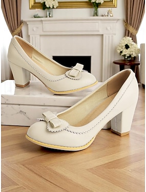 Damen Vintage Lolita Mary Jane Heels mit Schleife und Herzschnalle – Retro Plateaupumps für Cosplay und Partys