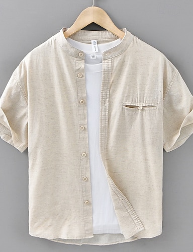 Herren Hemd Leinenhemd Popover-Hemd Freizeithemd Baumwollhemd Einfach Urlaub Straße Weiß Marineblau Blau Beige Kurzarm Stehkragen Sommer Bekleidung
