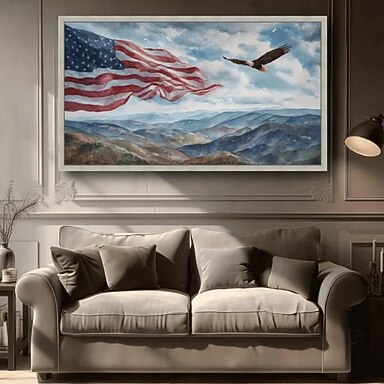 Amerika 250 Jahre – handgemaltes Ölgemälde auf Leinwand – Wanddekoration mit amerikanischer Flagge, Sternen, Streifen und Weißkopfseeadler – gerollt, rahmenlos, ungespannt