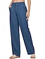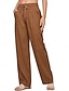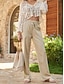 Damen Leinenähnliches Faux Baumwoll Leinen Hosen Chinos Gerade Urlaub Basic Lässig Voll-Länge Hohe Taille Unifarben Tasche Elastischer Bund Bequem Weich Komfortabel Elastisch Outdoor Street