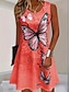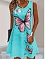 Damen Midikleid Sommerkleid A Linie Kleid Urlaub Lässig Strand Schmetterling Ausgehen Normale Passform Blumen Grafik Blatt Kurzarm Rundhalsausschnitt Dunkelpink Blau Grün Sommer