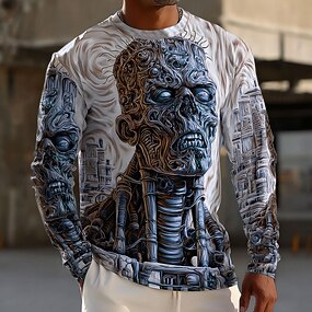 Schädel Herren 3D Skelett T-Shirt Langarm T-Shirt 3D-Druck Rundhals-Shirt Mode Übertrieben Street Casual Alltags Sommer Frühling Herbst Kleidung Bekleidung