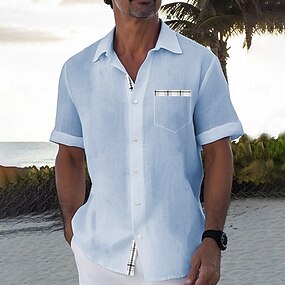 Herren Leinenhemd Sommer Hawaiihemd Knopfhemd Urlaub Täglich Rosa Blau Grün Kurzarm Umlegekragen Sommer Frühling Bekleidung Hemden mit Kragen