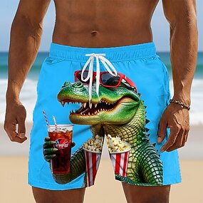 Herren Tiermotiv Krokodil Lustig Badehosen Badeshorts Boardshorts Mittlere Taille Hawaiianisch Outdoor Urlaub Alltagskleidung Seitentaschen Netzfutter Elastischer Kordelzug in der Taille Designer