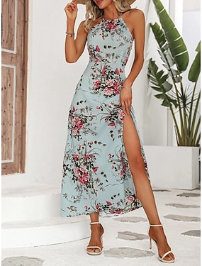 Damen Maxikleid Boho-Kleid Freizeitkleid Neckholder-Kleid Elegant Mode Modern Urlaub Ausgehen Wochenende Normale Passform Blumen Ärmellos Neckholder Blau Schwarz Braun Leicht Blau Sommer Frühling