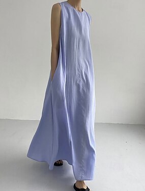Damen Maxikleid Kunstbaumwollleinen Shiftkleid Sommerkleid Freizeitkleid Basic Lässig Täglich Urlaub Ferien Lässiger Schnitt Einfarbig Ärmellos Rundhalsausschnitt Blau Gelb Rosa Rote Sommer Frühling