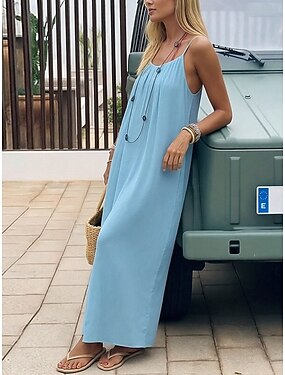 Damen Maxikleid A Linie Kleid Sommerkleid Lässig Täglich Lässiger Schnitt Einfach Ärmellos Spaghettiträger Blau Schwarz Weiß Purpur Sommer