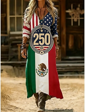 Unabhängigkeitstag Damen Maxikleid Freizeitkleid Druckkleid Klassisch Modern Täglich Outdoor Urlaub Normale Passform Sternenbanner Langarm V Ausschnitt Blau Rote Grün Frühling Herbst