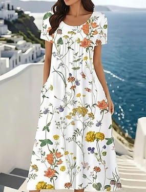 Damen Casual kleid A Linie Kleid Sommerkleid Strassenmode A-Linie Urlaub Strasse Festtage Lockere Passform Kurzarm Rundhalsausschnitt Weiß Gelb Rote Blau Sommer